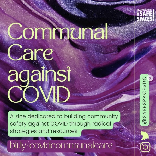 The zine series, Communal Care against COVID, highlighted the impacts of COVID, provided a space to grieve and be angry about the state of the world, battle misinformation, develop care plans and communications for someone gets COVID, and ignite more action toward COVID safety.