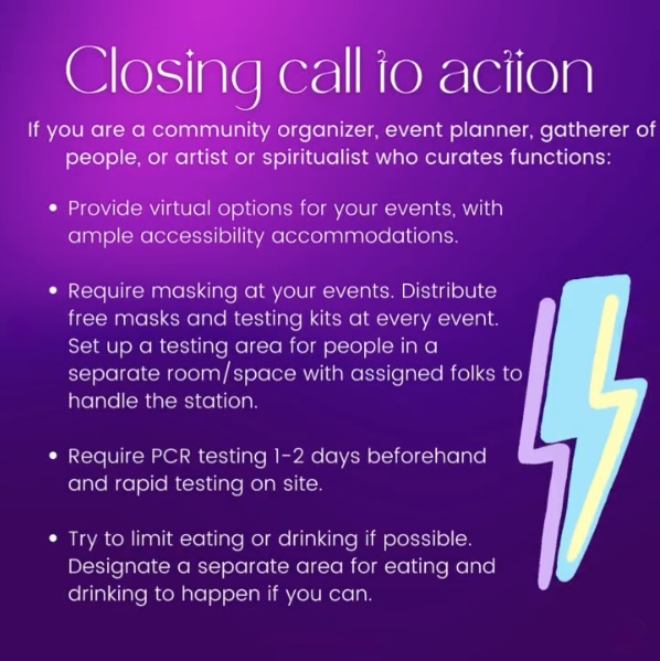 From the first zine: “We’ve been abandoned by the state. It is a counterrevolutionary act to move as if the pandemic is not still a very real threat to our lives. Yes, it’s been tiring. Yes, it’s been an inconvenience. But is it worth it to ignore the death machine around us? We are all accountable to remedying this neglect so that marginalized disabled survivors can navigate community with less fear and risk.”