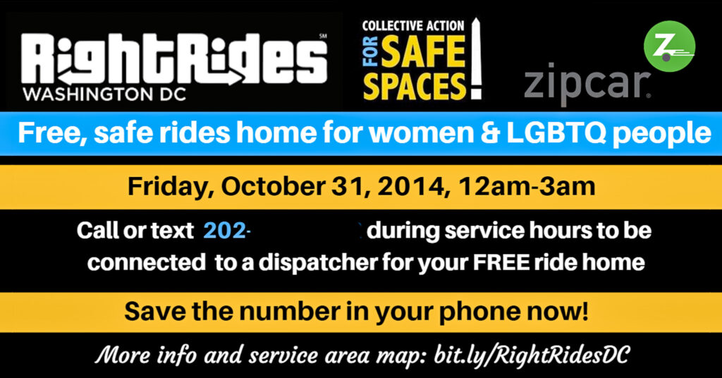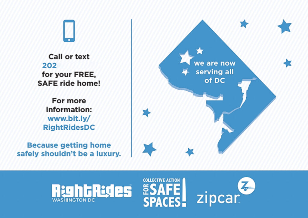 RightRides DC was a direct service program that offered free, safe, late-night rides home to women, gender non-conforming, and LGBTQ-identifying people. The program motto was “Getting home safe shouldn’t be a luxury.” Launching in fall 2014 RightRides DC arrived just before the widespread adoption of services like Uber and Lyft. The program was supported by one part-time paid staff with volunteer drivers and operationally built on a partnership with the short term car rental company Zipcar. RightRides DC was modeled after a pre-existing program in New York, NY.