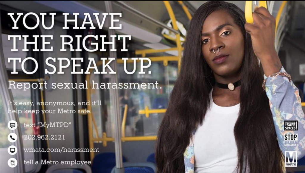 Beginning in 2012, CASS partnered with Stop Street Harassment and the Washington Metropolitan Area Transit Authority (WMATA), to launch multiple awareness campaigns to address sexual harassment and assault on DC’s public transit system.