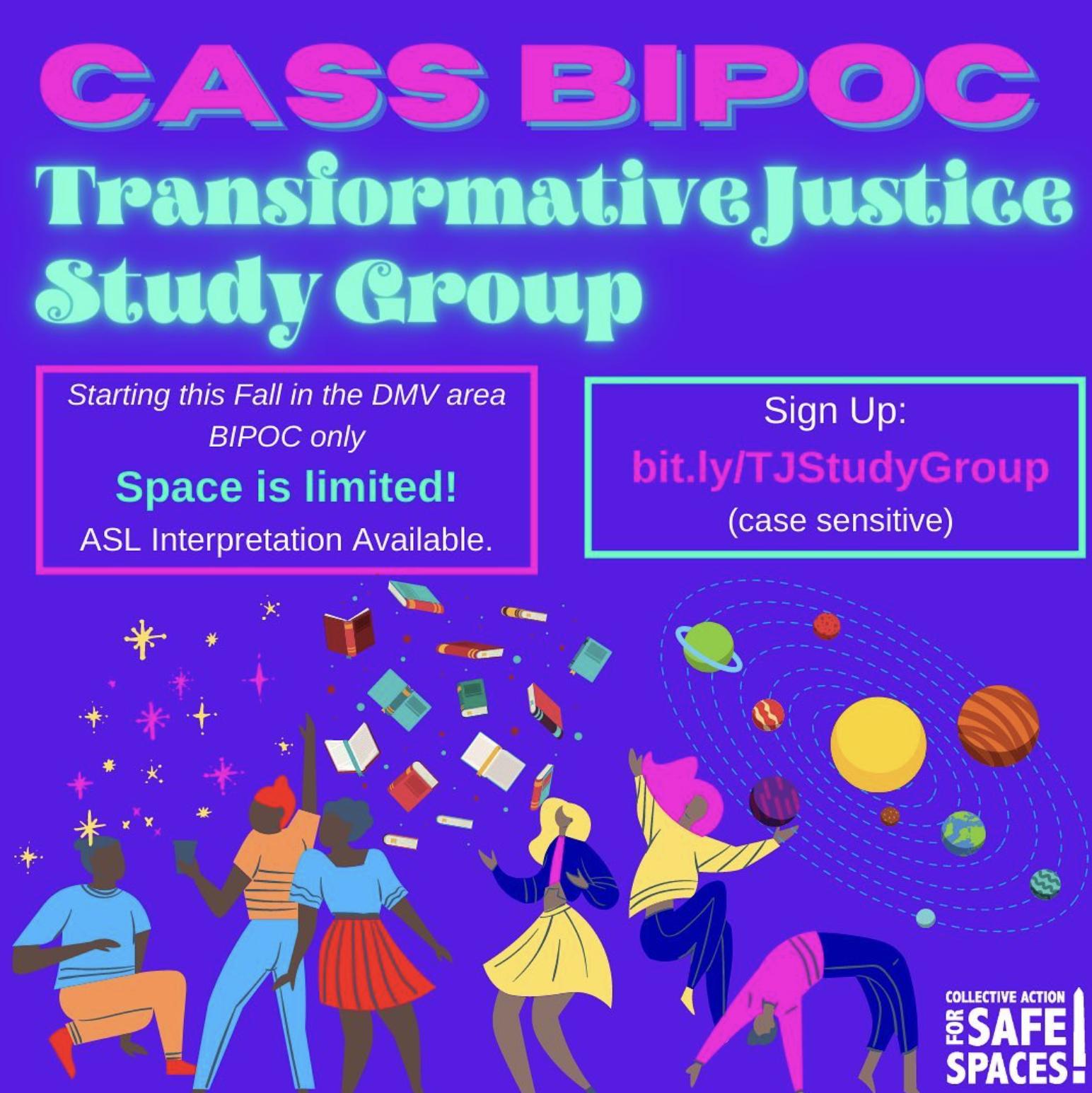 Collective Action for Safe Spaces was a Black trans, queer, and non-binary-led organization that was founded in 2009. The organization started as an anti-street harassment online forum led by volunteers, and grew into a collective of staff members, board members, volunteers, consultants, and coalition members. The organization specialized in public education, cultural organizing, coalition-building, and advocacy to build anti-carceral community safety.