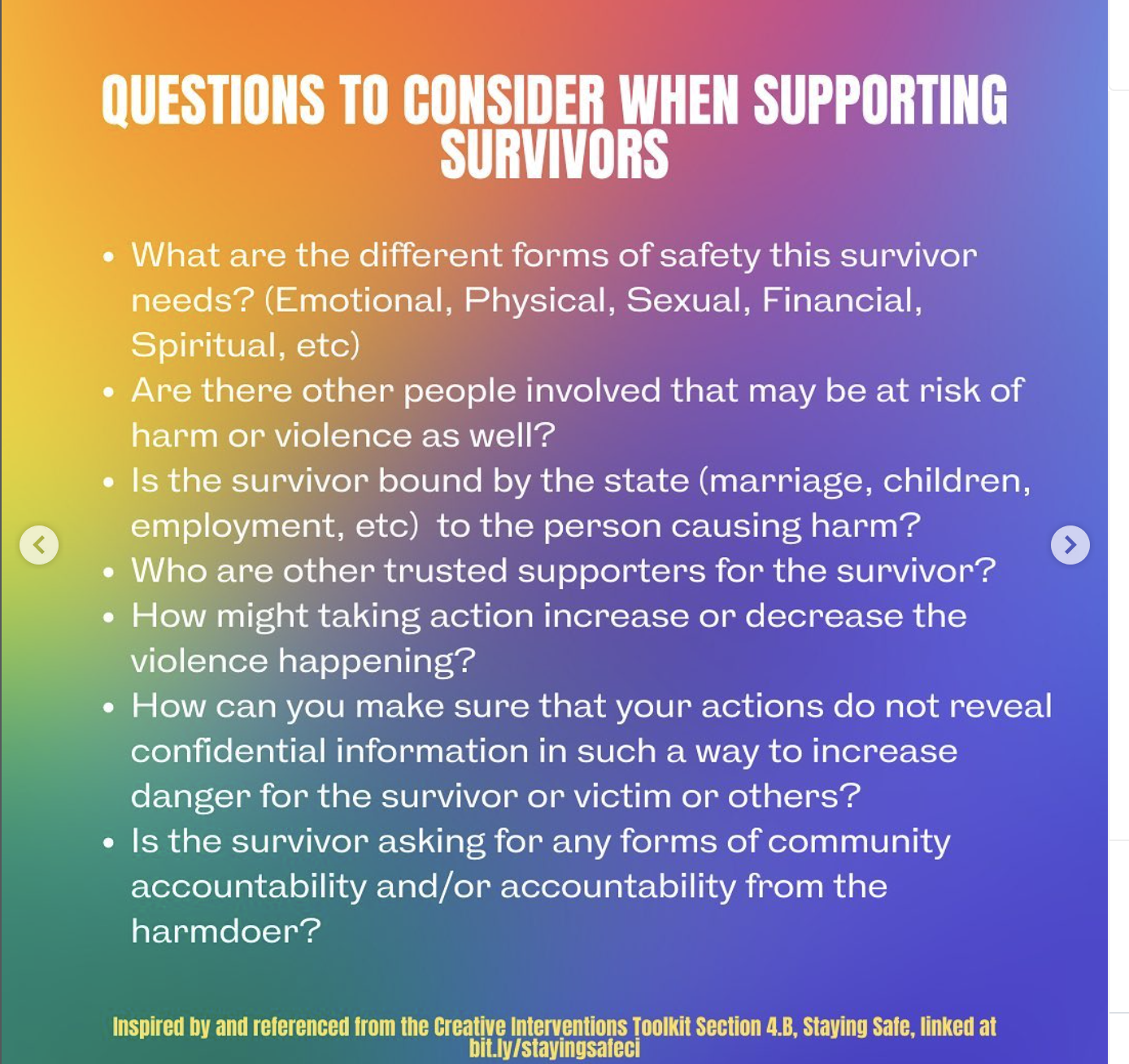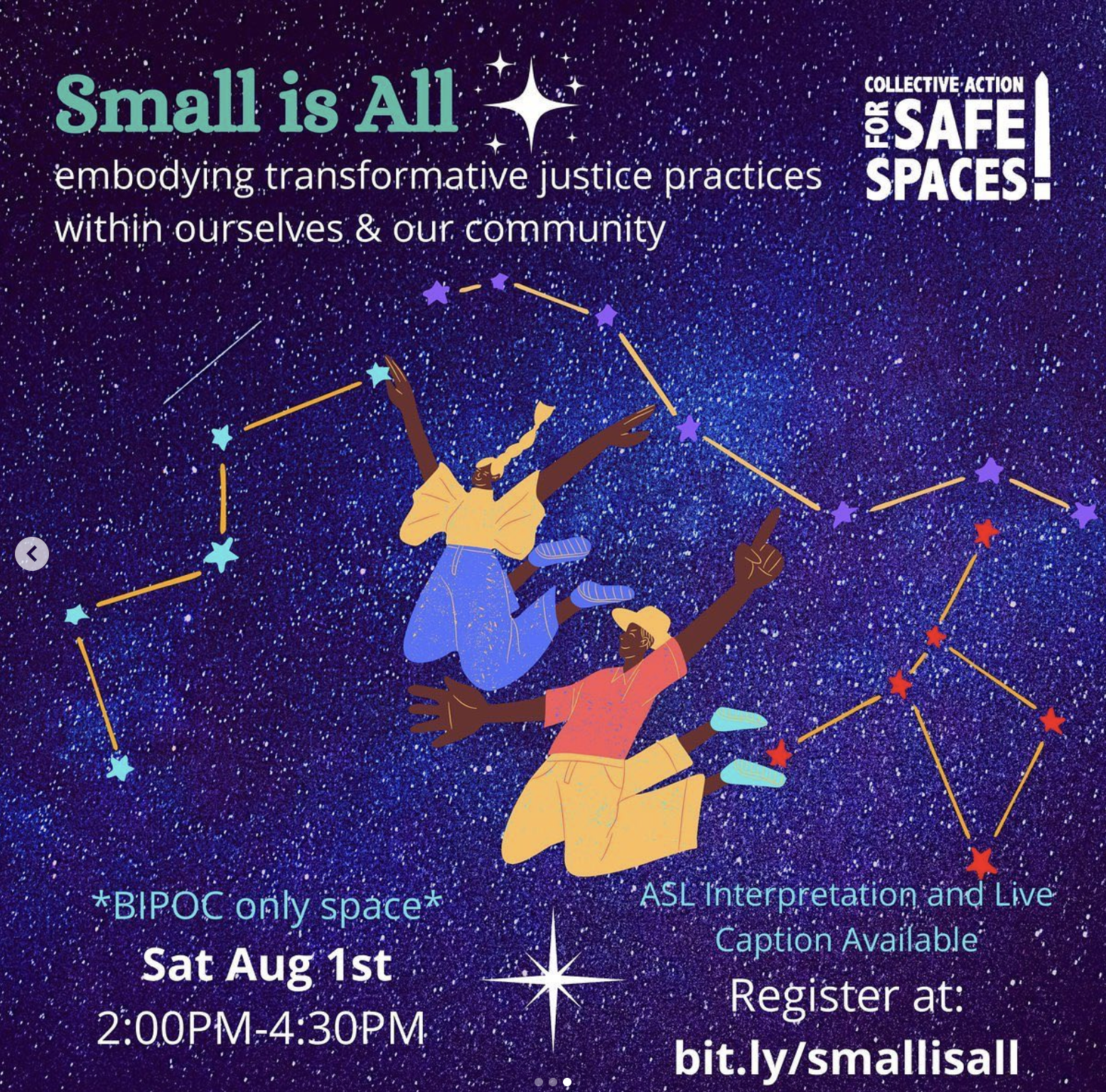 Collective Action for Safe Spaces sunset in March 2025, and leaves behind a legacy of cultivating the greater DC community’s capacity to respond directly to patriarchal and state violence through transformative justice and abolitionist frameworks.